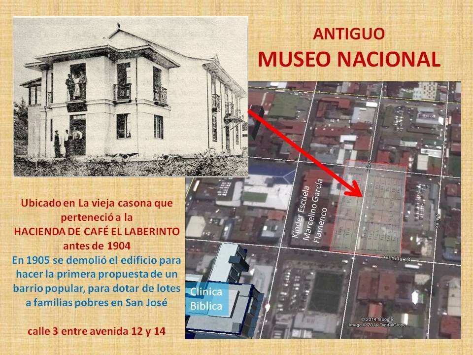 Algo interesante es que en la vieja casona que perteneció a la HACIENDA DE CAFÉ EL LABERINTO se ubicó la segunda sede del Museo Nacional desde 1896 hasta 1903. Sin embargo debido al estado ruinoso en que se encontraba dicha casa, se demolió y se continuó con la ampliación de la calle. Ver próxima fotografía: