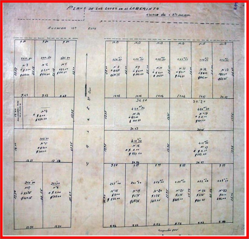 Edificaciones y calles que conformaron parte de la lotificación El Laberinto, en el año 1905