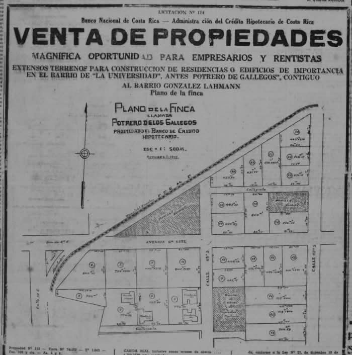 El barrio se acrecentó con la urbanización de los cafetales de la familia González Lahmann y unos años después se lotificó el norte del denominado potrero de los Gallegos. En el término de dos décadas esta área pasó de ser un terreno suamposo, donde los chiquillos iban a coger ranas (Cerdas Mora, 1998), a un sector habitacional para familias adineradas, en el que sus magnificas residencias eran edificadas por renombrados arquitectos costarricenses y conocidas compañías constructoras, entre ellos Jaime Carranza, Adela de Jiménez y posteriormente José María Barrantes. (Ferrero, 1998).
