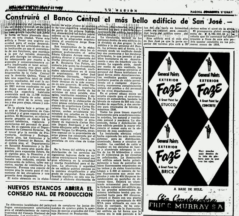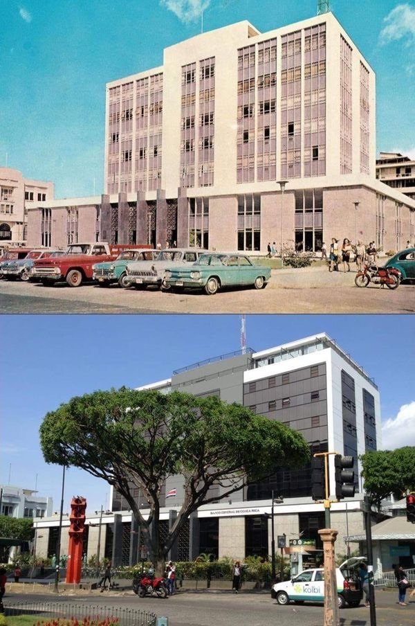 Al finalizar la década de 1950, la ciudad de San José se transformó, se derrumbaron viejos edificios de siglos pasados para dar cabida a nuevos edificios modernos de estilo internacional y claros exponentes simbólicos del nuevo Estado benefactor, entre ellos la banca nacionalizada. Para levantar el Banco Central se derribaron el antiguo Palacio Nacional y los restos de la antigua Factoría de Tabacos y del Cuartel de la Artillería.