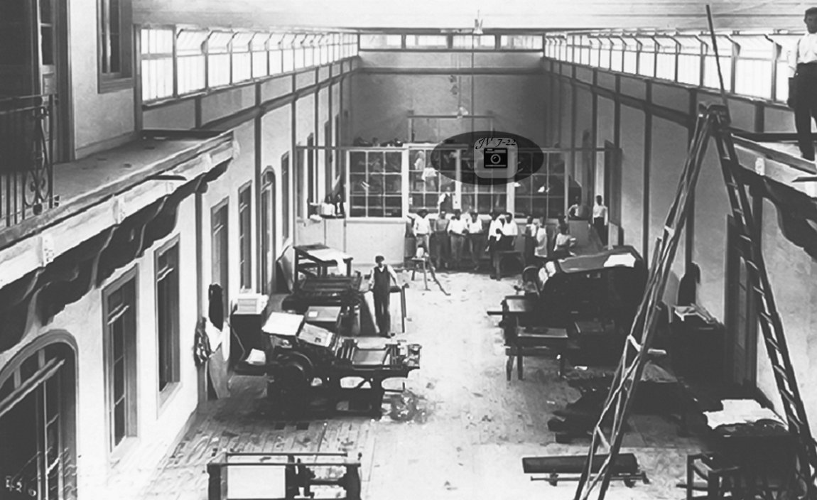 4.No se ha podido precisar con exactitud a partir de qué fecha la Imprenta Nacional fue trasladada de la Calle de El Carmen al local anexo a la casa del Cuño. En 1895 estaba allí, aun cuando, según la nomenclatura urbana de la época, su ubicación era calle 19 norte, avenidas 5 y 6 oeste. Hoy día sería avenida 3, calle 4, en la misma manzana del Edificio de Correos, extremo sureste. En este local se encontraban las oficinas, el Área de Tipografía, de Litografía y de Encuadernación.