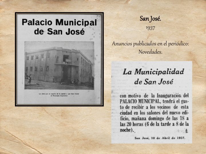 Este edificio comenzó a construirse a mediados de Octubre de 1936, como una necesidad imperante ya que la Municipalidad de San José no tenía un edificio donde se concentraran todos sus departamentos. Fue así como después de vencer muchas dificultades económicas, el mismo Ingeniero Humberto Bertolini buscó los medios para la financiación de la obra.