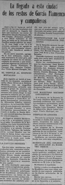 En San José, el viernes 11 de abril de 1924 a la una treinta y cinco de la tarde, en la Estación del Ferrocarril al Pacífico, se reunió una inmensa muchedumbre a esperar la llegada de los restos mortales del maestro salvadoreño García Flamenco y de sus compañeros Francisco Jiménez y Rafael Vargas, muertos en combate.