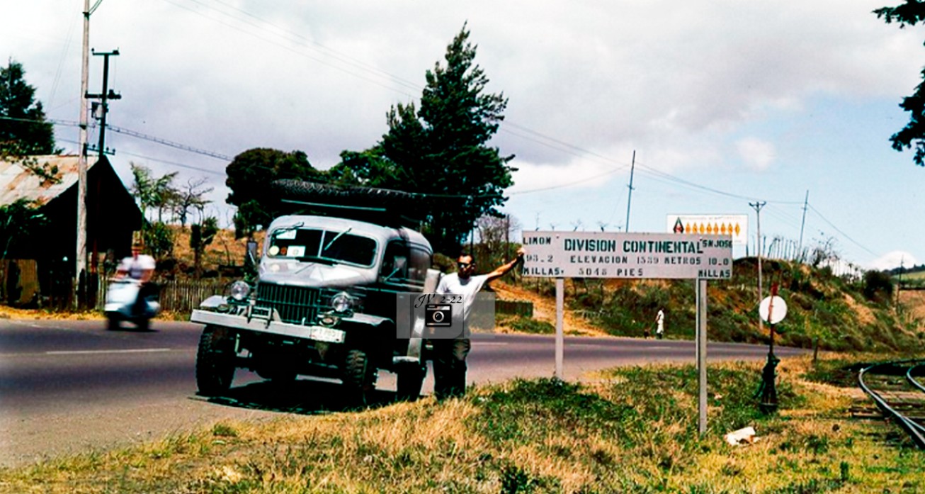 Esta fotografía data de 1950 y el lugar se localiza en el alto de Ochomogo en Cartago, donde se encontraba dicho rótulo, el cual marca la División Continental.