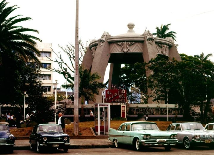 El actual quiosco del Parque Central de San José fue construido en 1944. cuenta con un sótano circular sostenido por seis columnas centrales que evoca la figura de una rosa de los vientos.