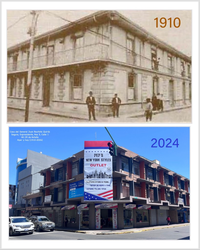 Casa de habitación del General Juan Bautista Quirós Segura (1853-1934) en la década de 1910 y quien fue presidente de Costa Rica luego del régimen de Federico Tinoco Granados por dos semanas en 1919.