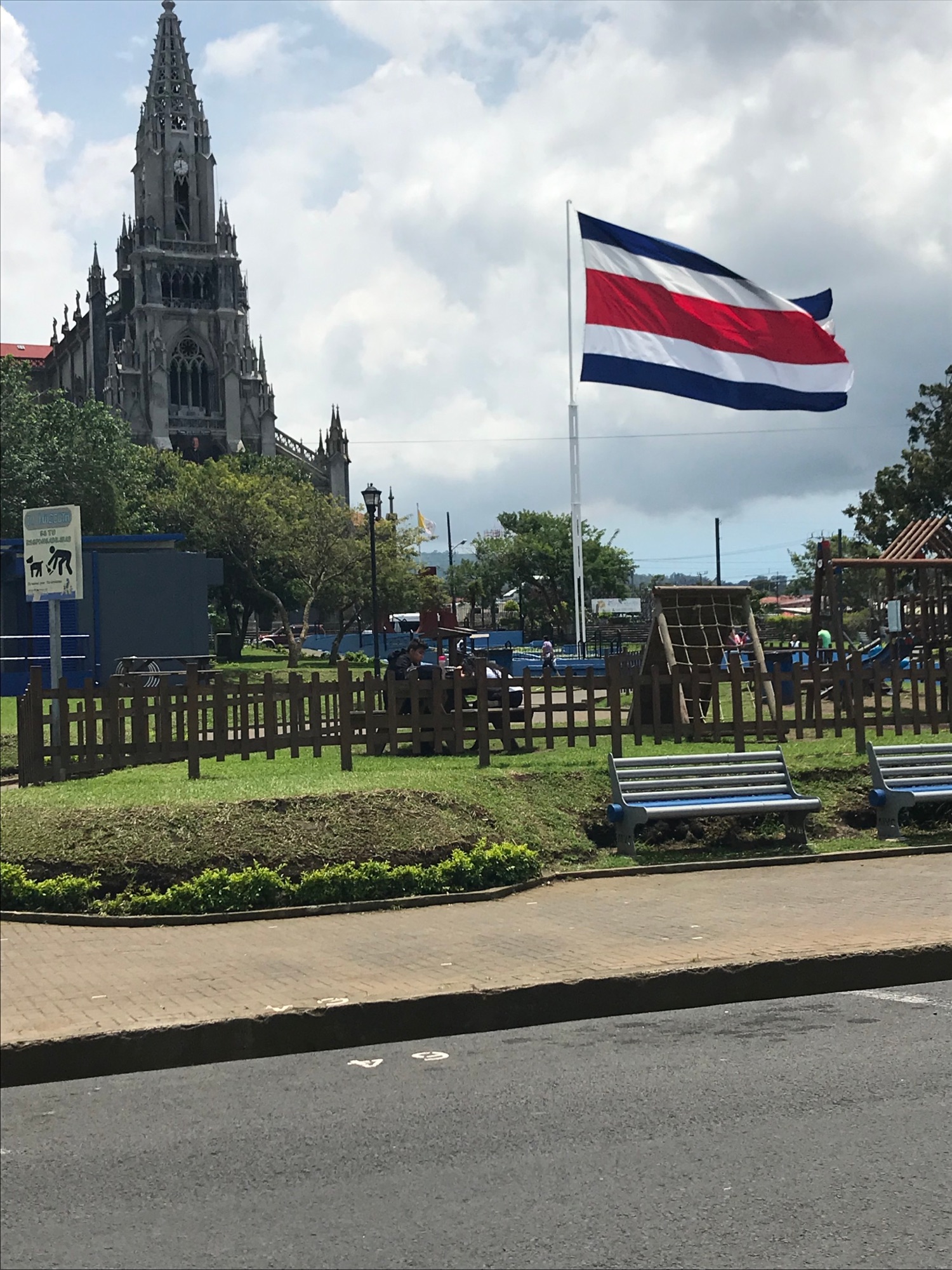 Otro detalle es que cada 1 de setiembre se instala en el centro del parque, una de las banderas más grande de Costa Rica, la cual se ve hermosa ondeando los colores patrios. En el año 2005 se instaló el primer mástil de 12 metros de altura y se empezó la tradición de colocar la bandera más grande del país en este parque, y año con año la hicieron más grande. Se mejoró el mástil y la asta, se elevó su altura, hasta este año que tiene casi 24 metros”. La bandera pasó de 110 cuadrados a 160 metros cuadrados.