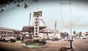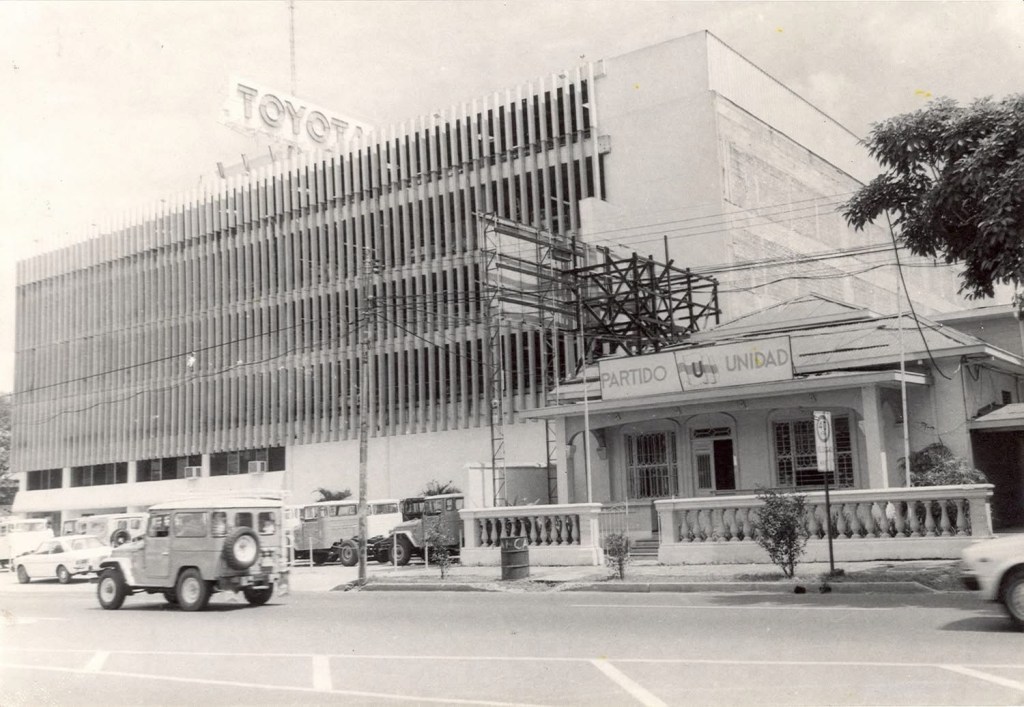Local de Toyota sobre Paseo Colón. Dicho lugar ha sido ocupado por Toyota desde 1962, e inicialmente operó en un espacio compartido con una Gasolinera Shell, bajo la condición de que fuera construida una estación de servicio, tal y como se aprecia en la fotografía.