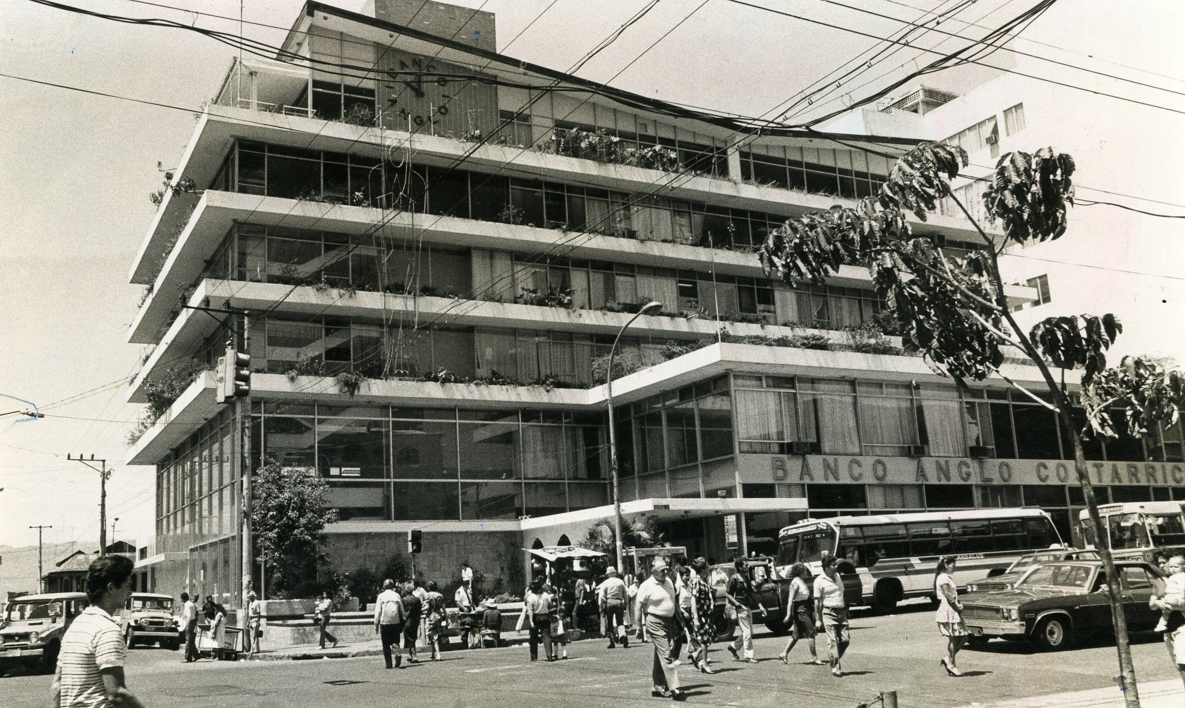 Esquina suroeste de la manzana del Banco Central. En el fondo el edificio que precedió al actual Edificio de la Artillería. En este edificio estuvo la primera sucursal de la Agencia Datsun luego que se trasladara a la Sabana. También estuvo en ese edificio RILASA y Radio Libertado además de otros negocios.