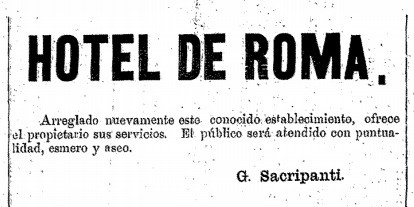 Se caracterizaba por ser un hotel de primer orden, situado en punto central. Brindaba toda clase de comodidades al viajero y satisfacía las exigencias del buen gusto. Su propietario el señor José Sacripanti.